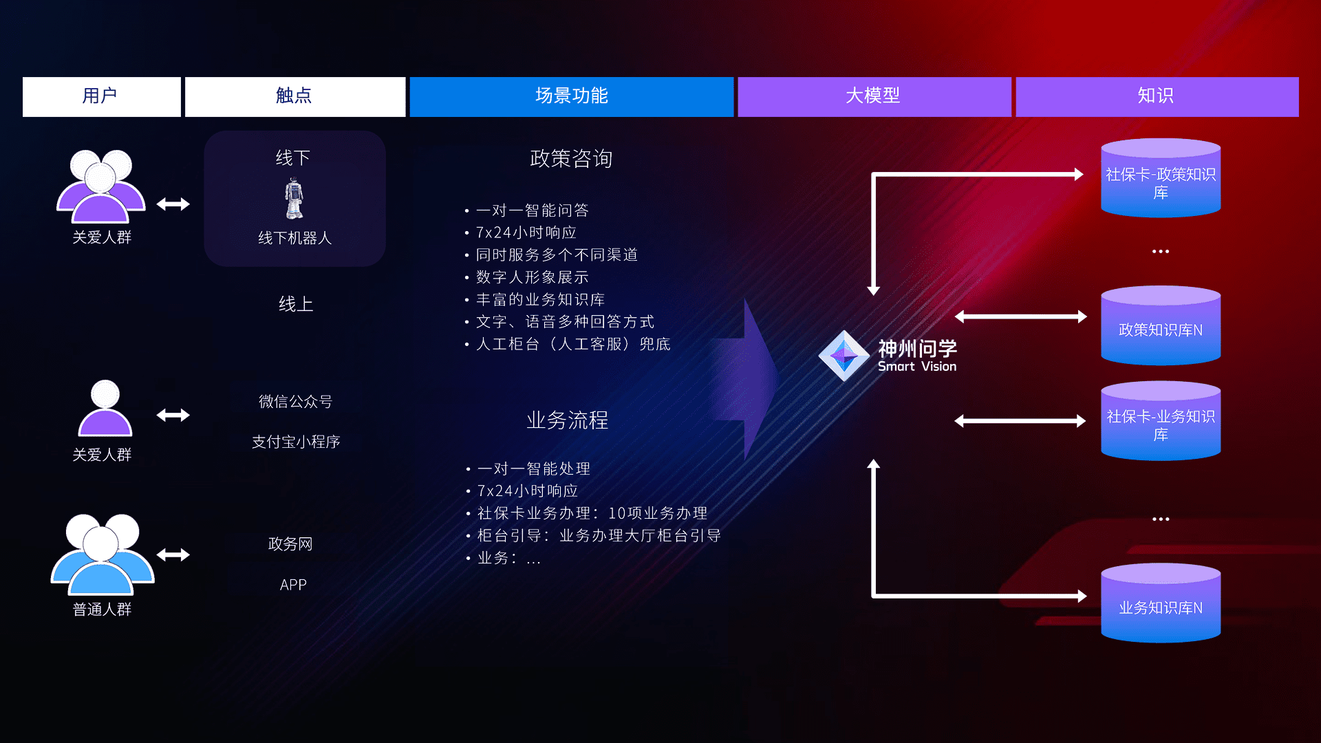 • 线上线下全覆盖:线上提供微信公众号、、支付宝小程序、、、、政务网、、、app多种渠道,,,与线下机器人形成完整服务体系。。。。